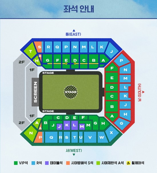 - 시야방해석 S석은 북측 스크린으로 시야가 확보되지 않는 곳이 있고 공연장 안전 난간으로 방해될 수 있는 자석이 있다고 합니다.