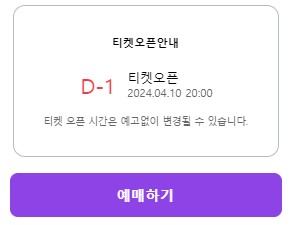- 비정상적인 방법의 구매 암표 매매 티켓을 당사에서 모니터링 되고 사전 통보없이 구매가 취소 될 수 있다고 합니다.